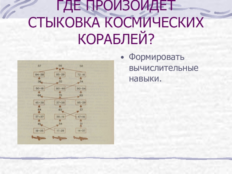 ГДЕ ПРОИЗОЙДЕТ СТЫКОВКА КОСМИЧЕСКИХ КОРАБЛЕЙ?Формировать вычислительные навыки.