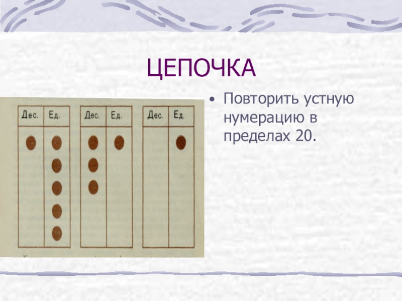 ЦЕПОЧКАПовторить устную нумерацию в пределах 20.