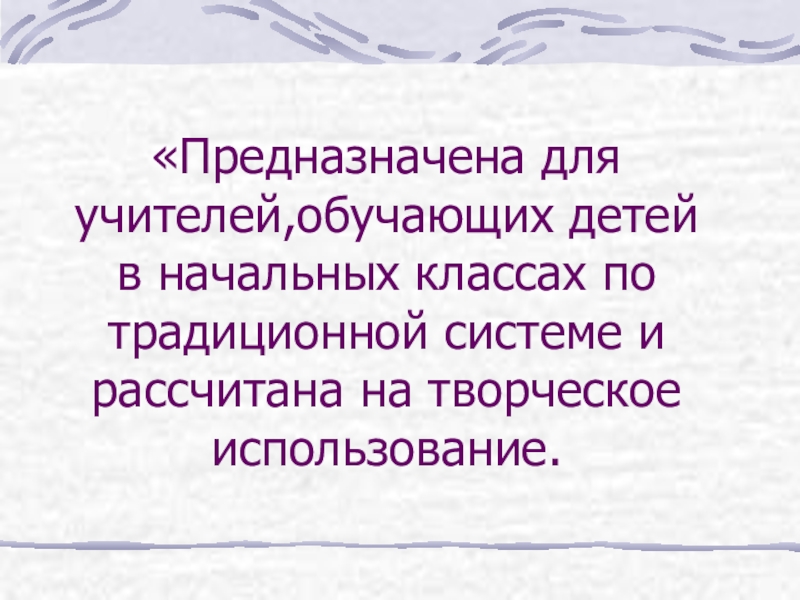 Слайд 11«Предназначена для учителей,обучающих детей в начальных классах по традиционной системе и