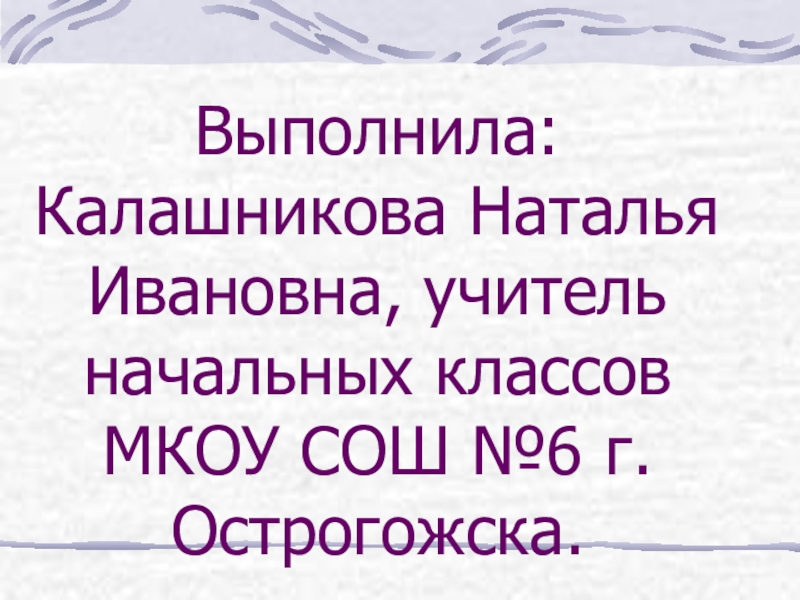 Слайд 2Выполнила: Калашникова Наталья Ивановна, учитель начальных классов МКОУ СОШ №6 г.Острогожска.