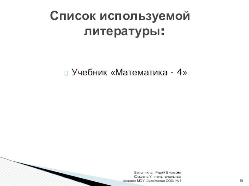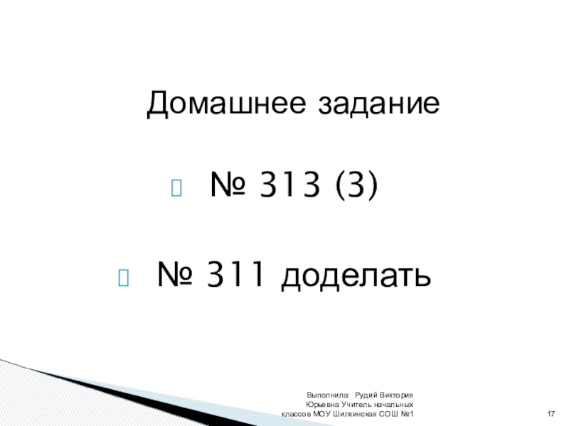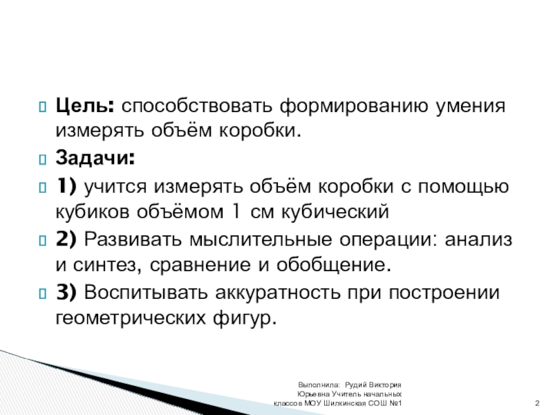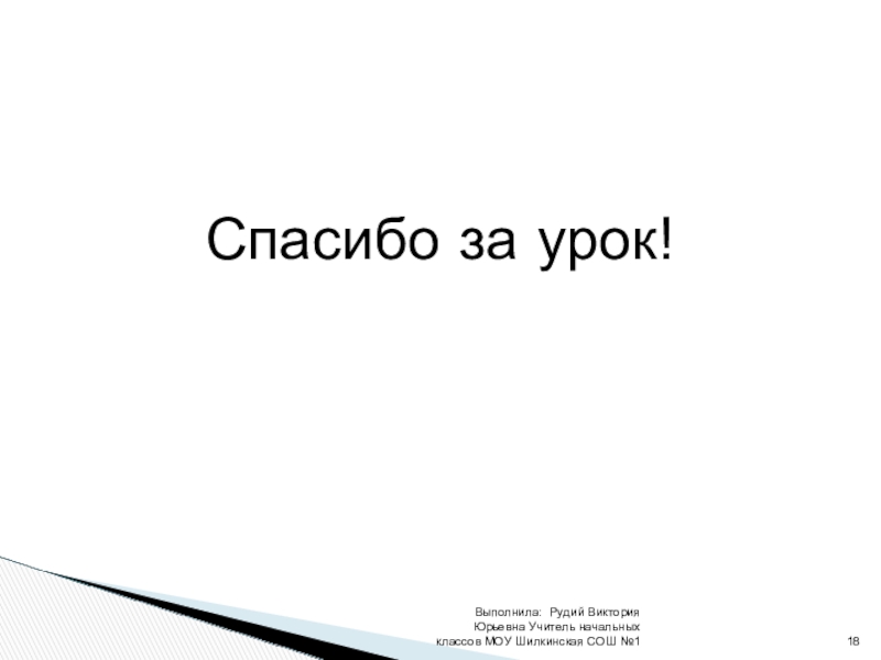 Выполнила: Рудий Виктория Юрьевна Учитель начальных классов МОУ Шилкинская СОШ №1