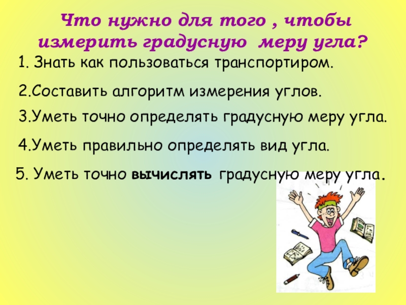 5. Уметь точно вычислять градусную меру угла.