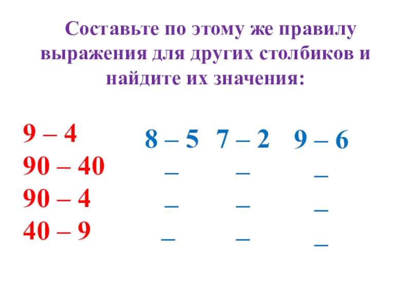 Составьте по этому же правилу выражения для других столбиков и найдите их значения: