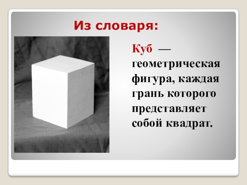 Из словаря:Куб — геометрическая фигура, каждая грань которого представляет собой квадрат.