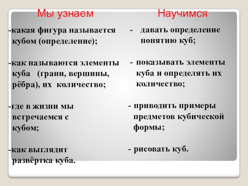 ЭЛЕМЕНТЫ КУБА граньвершинаребро