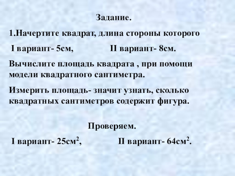 I вариант- 25см2, II вариант- 64см2.