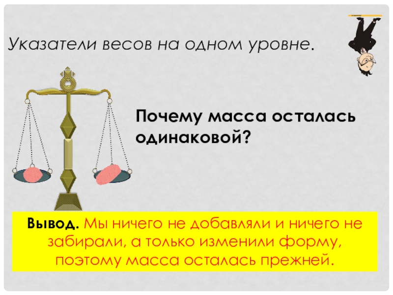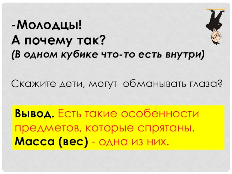 Вывод. Есть такие особенности предметов, которые спрятаны. Масса (вес) - одна из них.