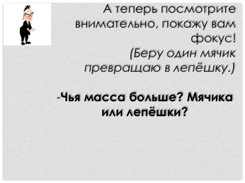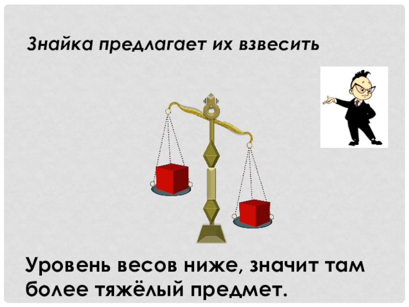 Сравните, пожалуйста, эти мячики по массе.