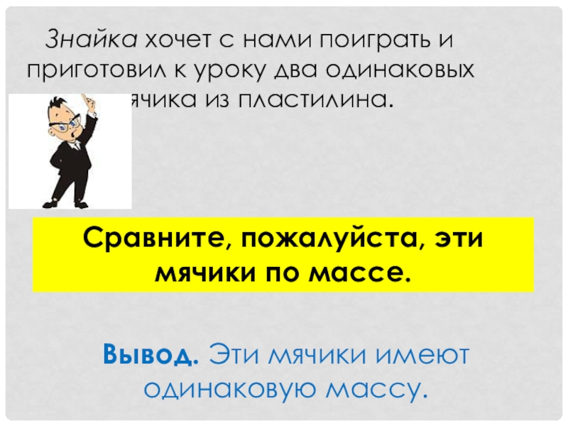 Вывод. Эти мячики имеют одинаковую массу.