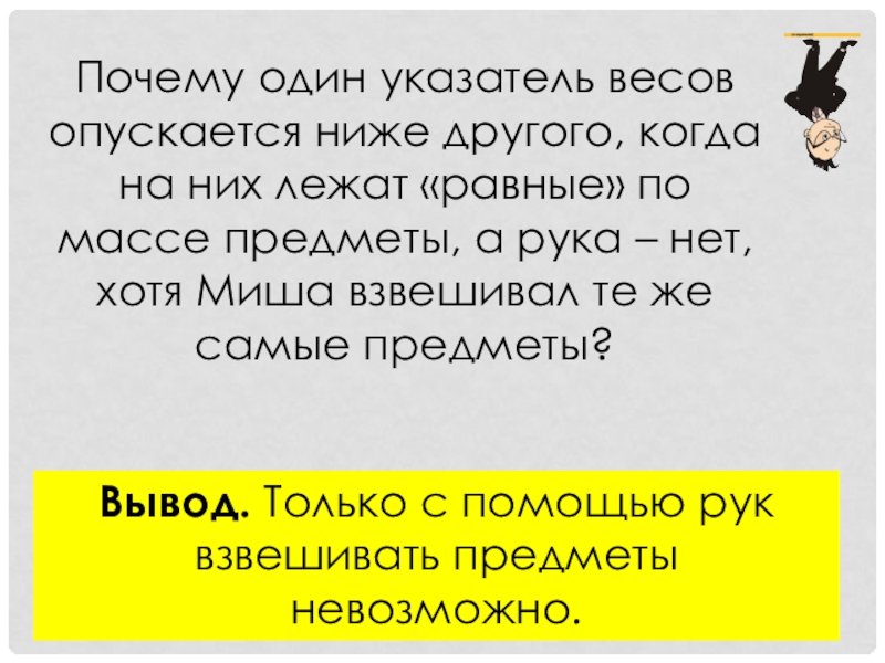 Вывод. Только с помощью рук взвешивать предметы невозможно.