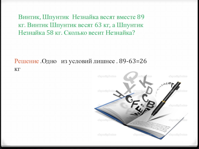 Решение .Одно из условий лишнее . 89-63=26 кг