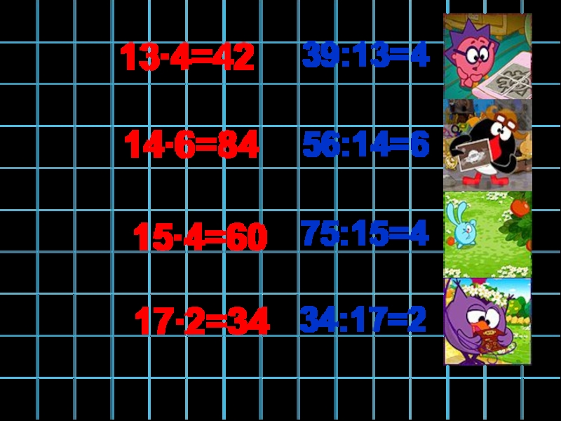 39:13=456:14=675:15=434:17=213∙4=4214∙6=8415∙4=6017∙2=34