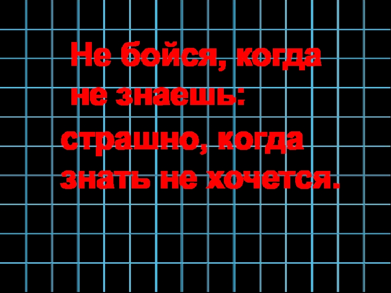 Не бойся, когда не знаешь:страшно, когда знать не хочется.