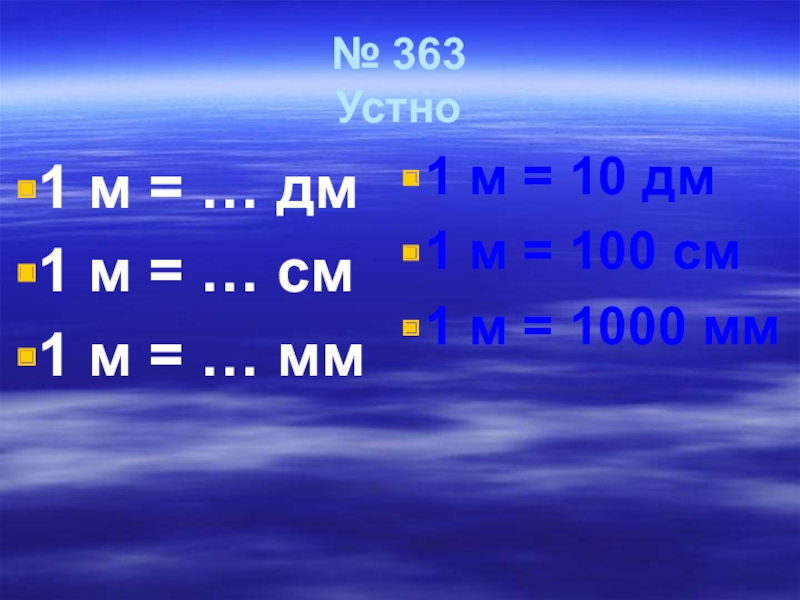 № 363 Устно1 м = … дм 1 м = … см 1 м = … мм1