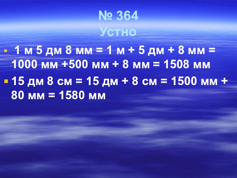 № 364 Устно 1 м 5 дм 8 мм = 1 м + 5 дм + 8