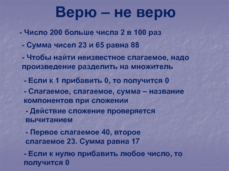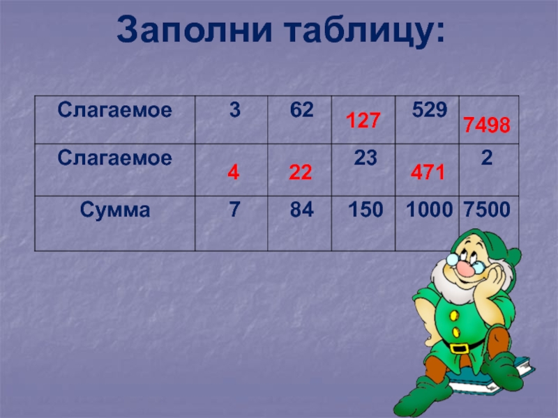 - Слагаемое, слагаемое, сумма – название компонентов при сложении