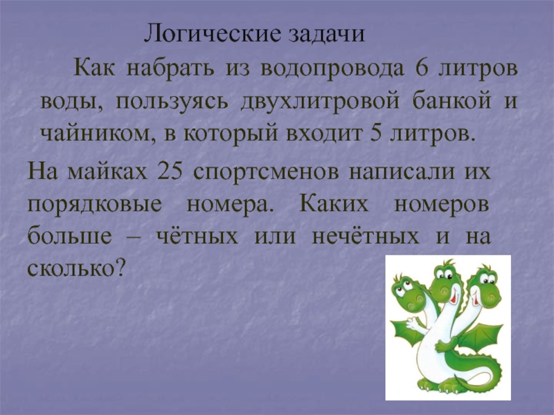 На майках 25 спортсменов написали их порядковые номера. Каких номеров больше – чётных или нечётных и на сколько?