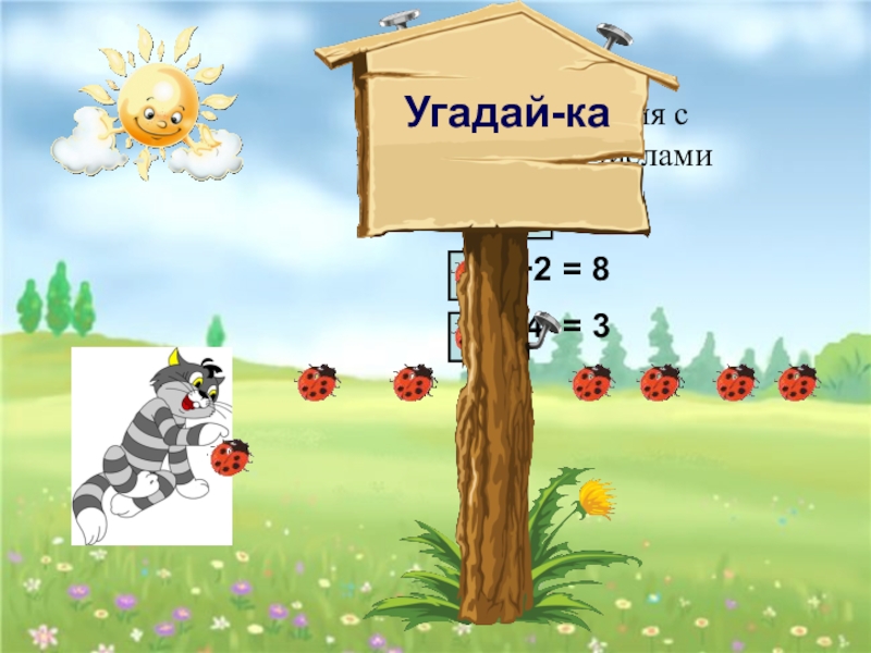 Составь выражения с пропущенными числами5 - = 3 +2 = 8 - 4 = 3Угадай-ка