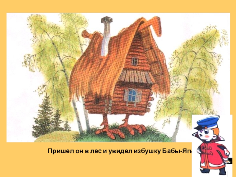 Слайд 13Пришел он в лес и увидел избушку Бабы-Яги.