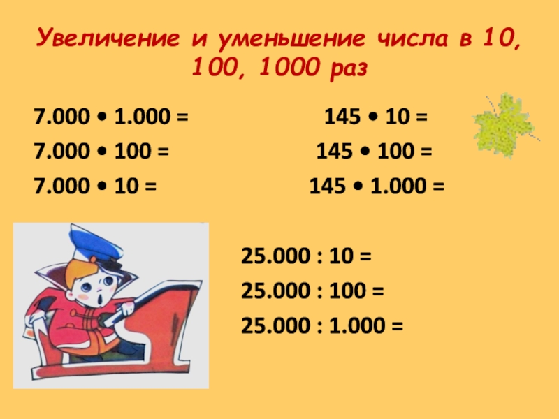 Увеличение и уменьшение числа в 10, 100, 1000 раз7.000 • 1.000 =