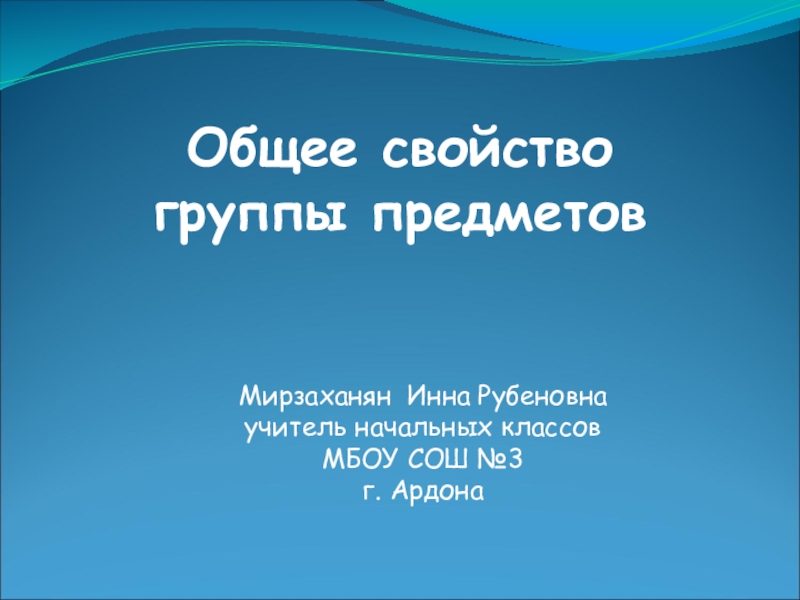 Общее свойство группы предметовМирзаханян Инна Рубеновнаучитель начальных классовМБОУ СОШ №3г. Ардона