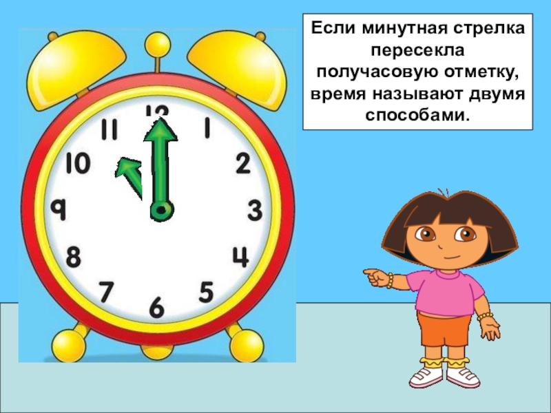 Если минутная стрелка пересекла получасовую отметку, время называют двумя способами.