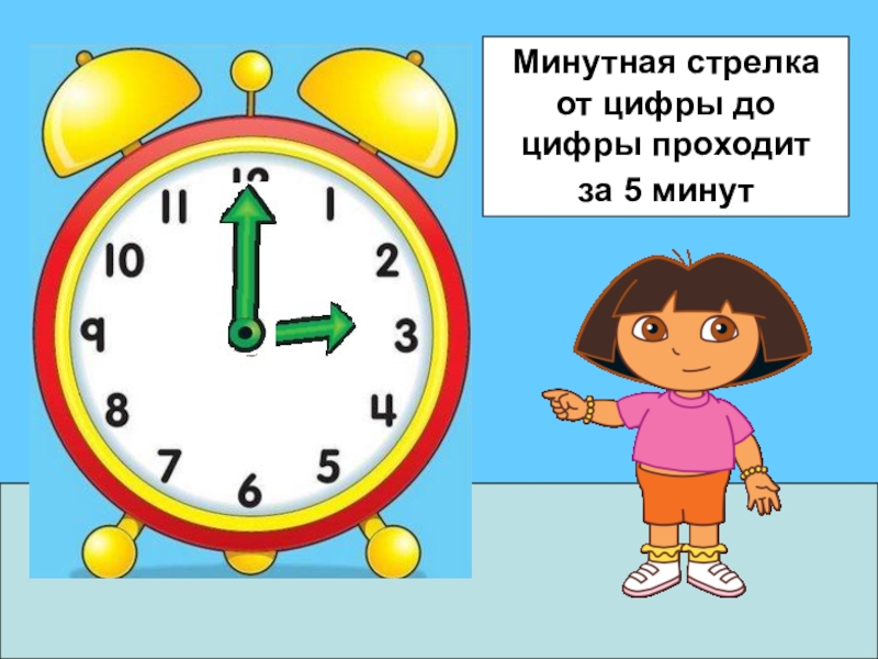 Минутная стрелка от цифры до цифры проходит