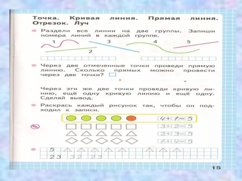 Точка. Кривая линия. Прямая линия.Отрезок. Луч..
