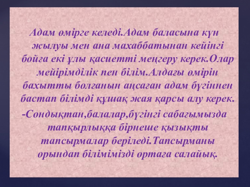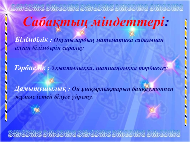 Дамытушылық : Ой ұшқырлықтарын байқау,топпен жұмыс істей білуге үйрету.
