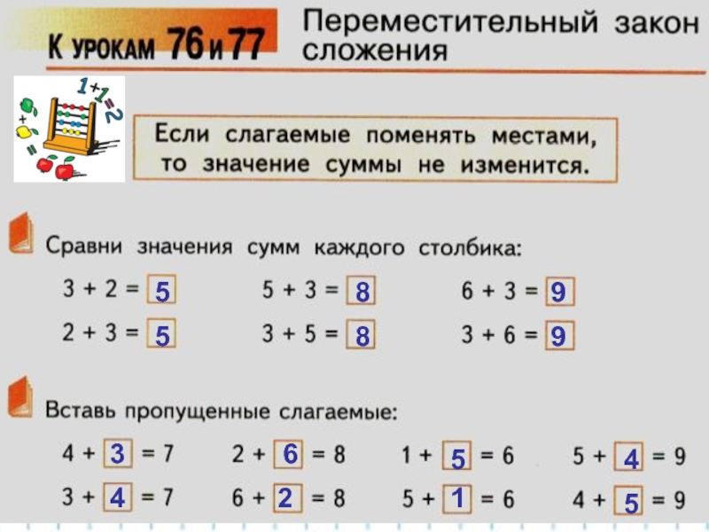 Презентация, доклад по математике на тему Переместительный закон сложения
