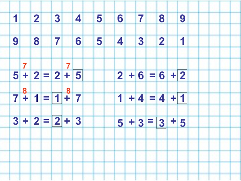 Слайд 1Переместительный закон сложения