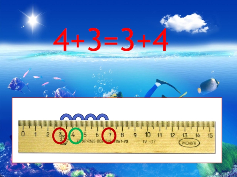 Слайд 94+3=3+4
