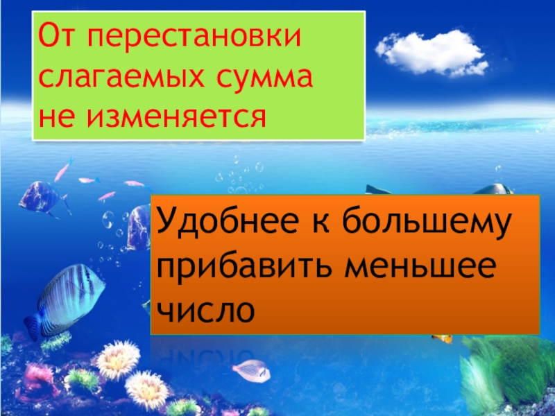 Слайд 10От перестановки слагаемых сумма не изменяется