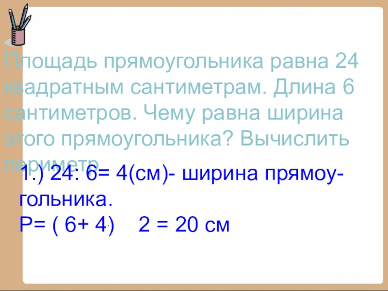1.) 24: 6= 4(см)- ширина прямоу-гольника.