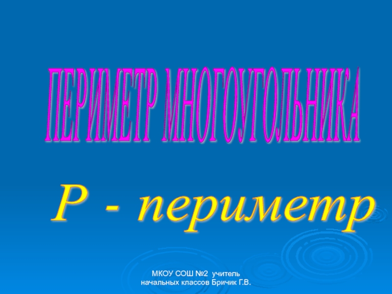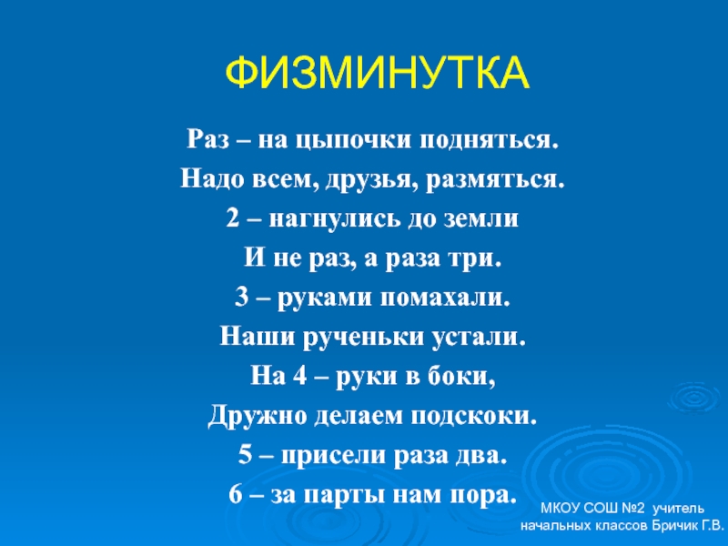 МКОУ СОШ №2 учитель начальных классов Бричик Г.В.