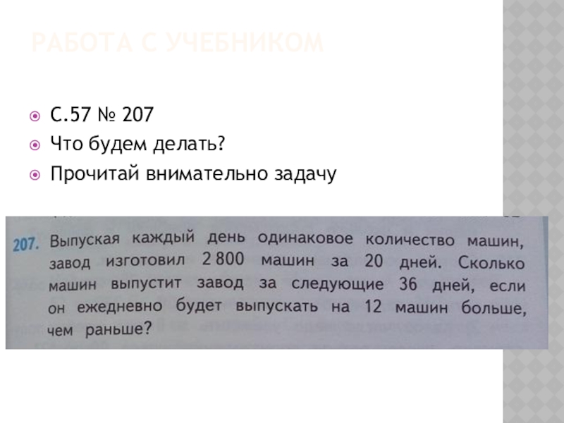 Работа с учебником  С.57 № 207 Что будем делать?Прочитай внимательно задачу