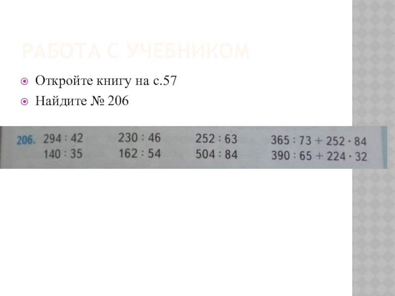 Работа с учебникомОткройте книгу на с.57Найдите № 206