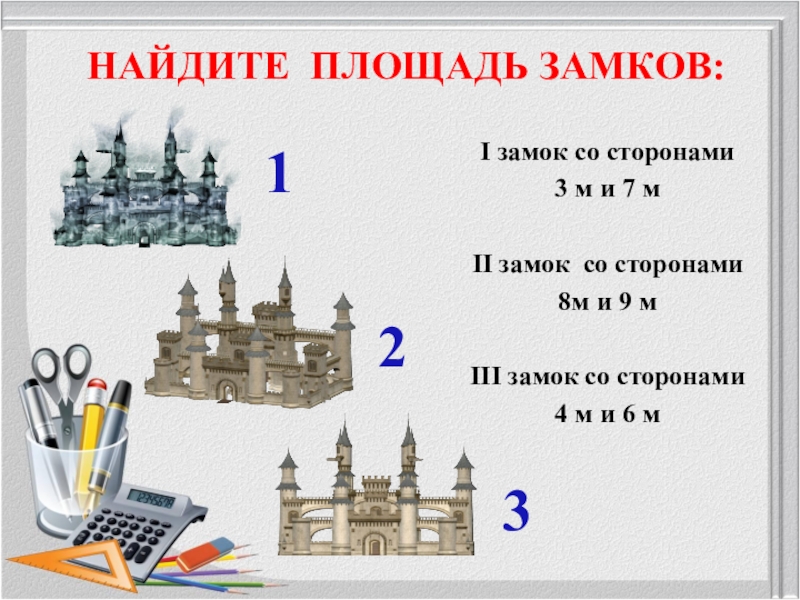 НАЙДИТЕ ПЛОЩАДЬ ЗАМКОВ: