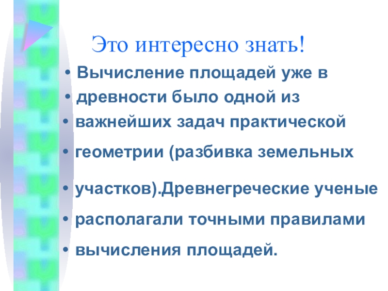 вычисления площадей.