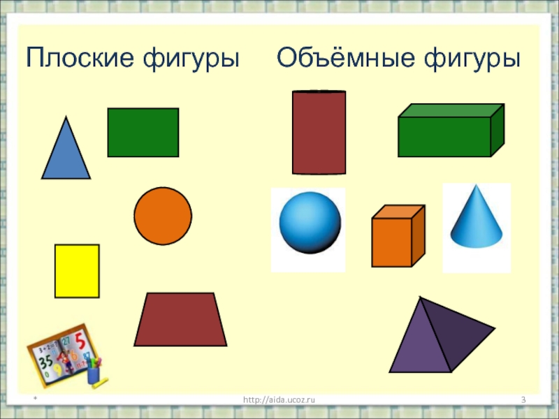 *http://aida.ucoz.ruПлоские фигурыОбъёмные фигуры