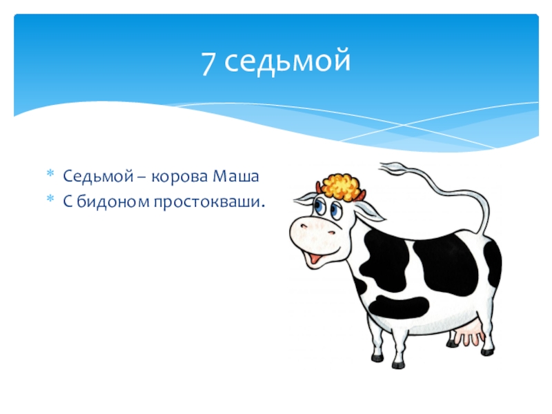 7 седьмойСедьмой – корова МашаС бидоном простокваши.
