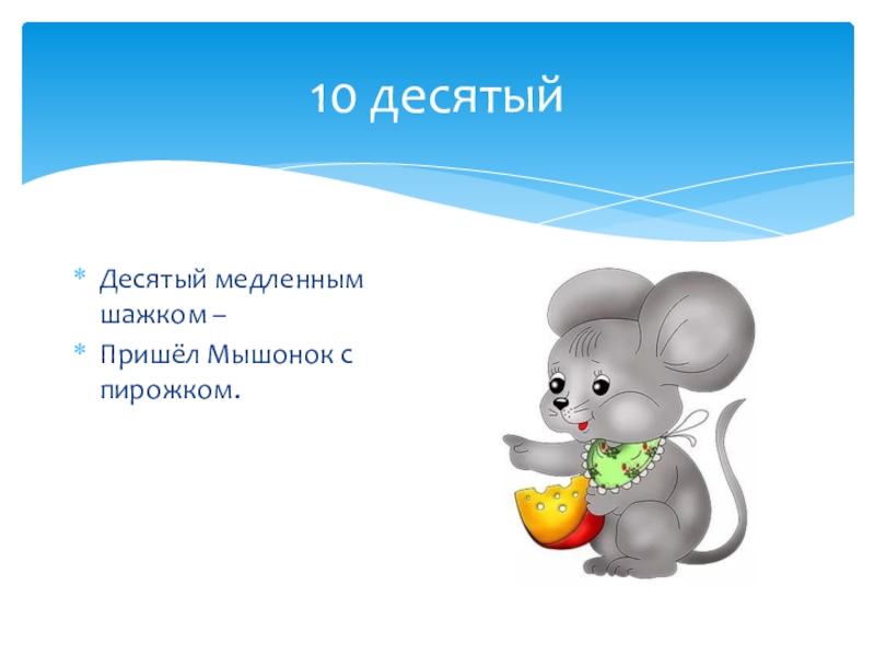 10 десятыйДесятый медленным шажком – Пришёл Мышонок с пирожком.