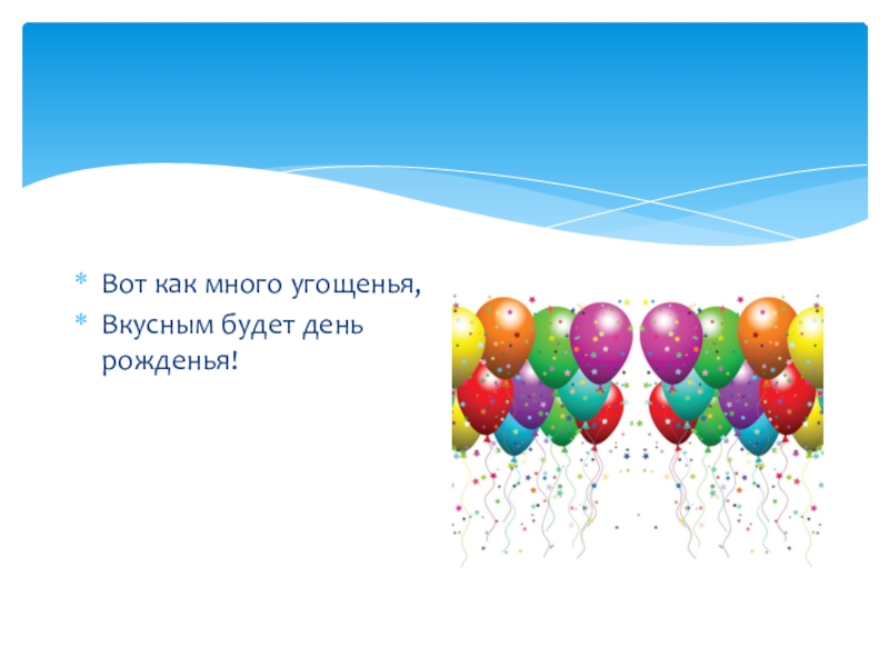 Вот как много угощенья,Вкусным будет день рожденья!