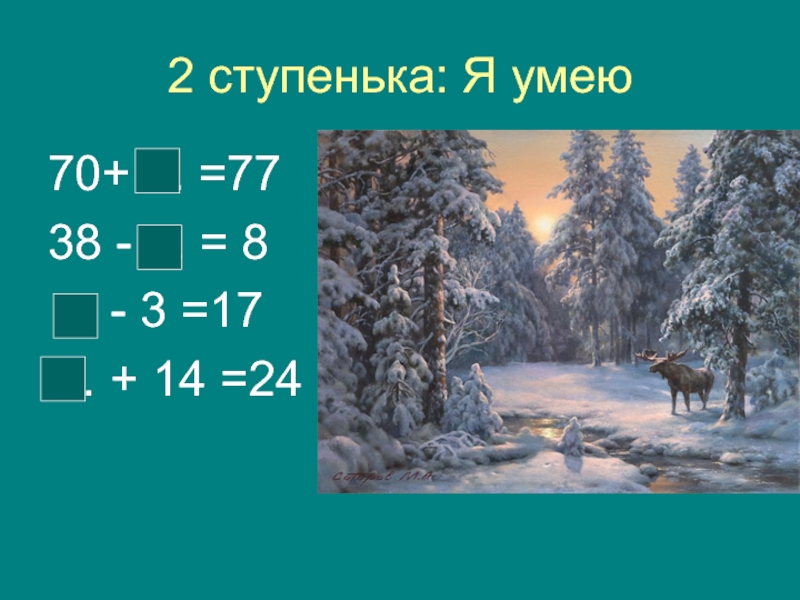 2 ступенька: Я умею70+ ... =7738 - ... = 8… - 3 =17… + 14 =24