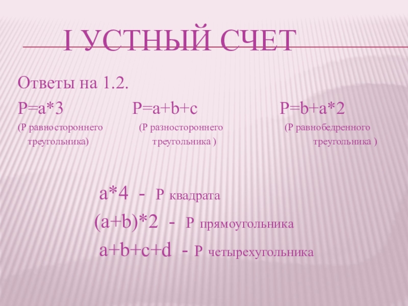 I Устный счетОтветы на 1.2.P=a*3        P=a+b+c