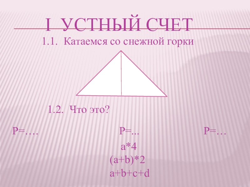 I устный счет 1.1. Катаемся со снежной горки1.2. Что это?Р=….