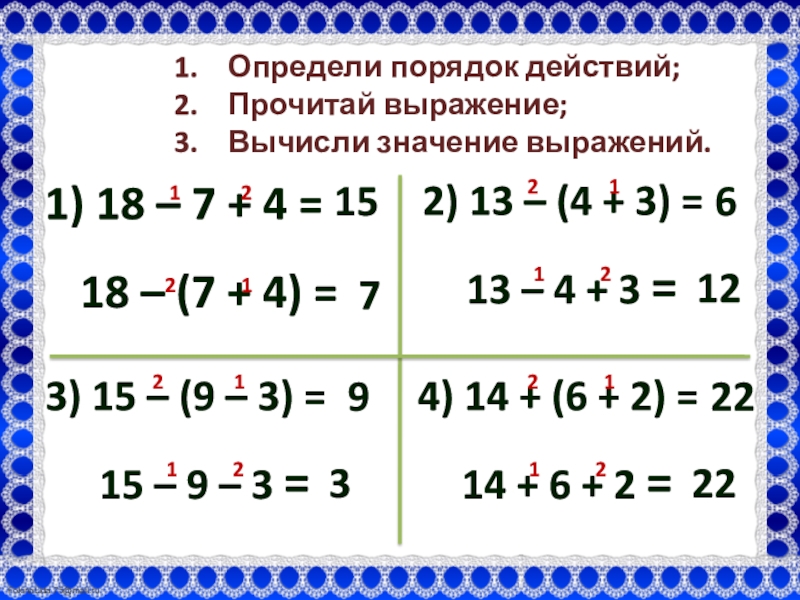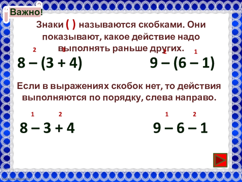 Если в выражениях скобок нет, то действия выполняются по порядку, слева направо.