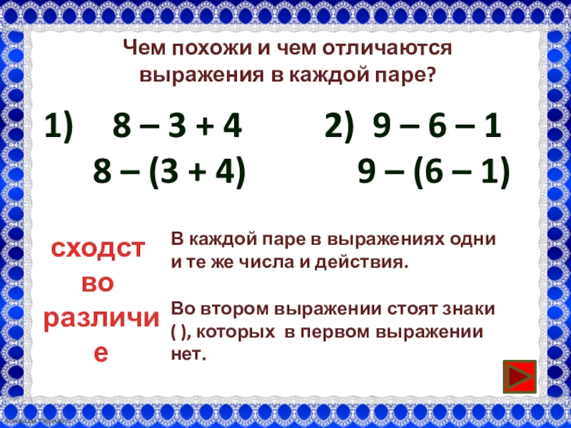 Во втором выражении стоят знаки ( ), которых в первом выражении нет.