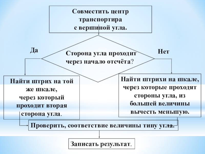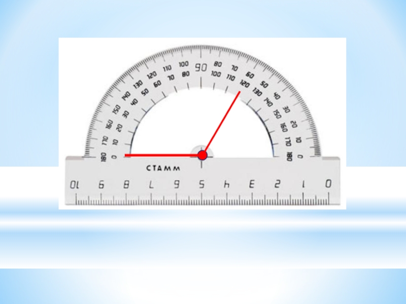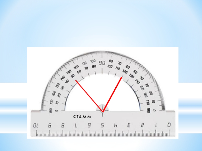 Найти штрихи на шкале, через которые проходят стороны угла, из большей величины вычесть меньшую.