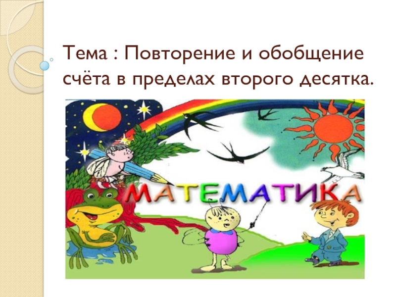 Слайд 1Тема : Повторение и обобщение счёта в пределах второго десятка.